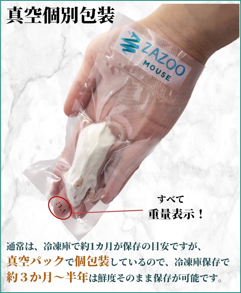ホッパー マウス 10〜15g 約6.5cm 真空 個別包装 国産 冷凍マウス